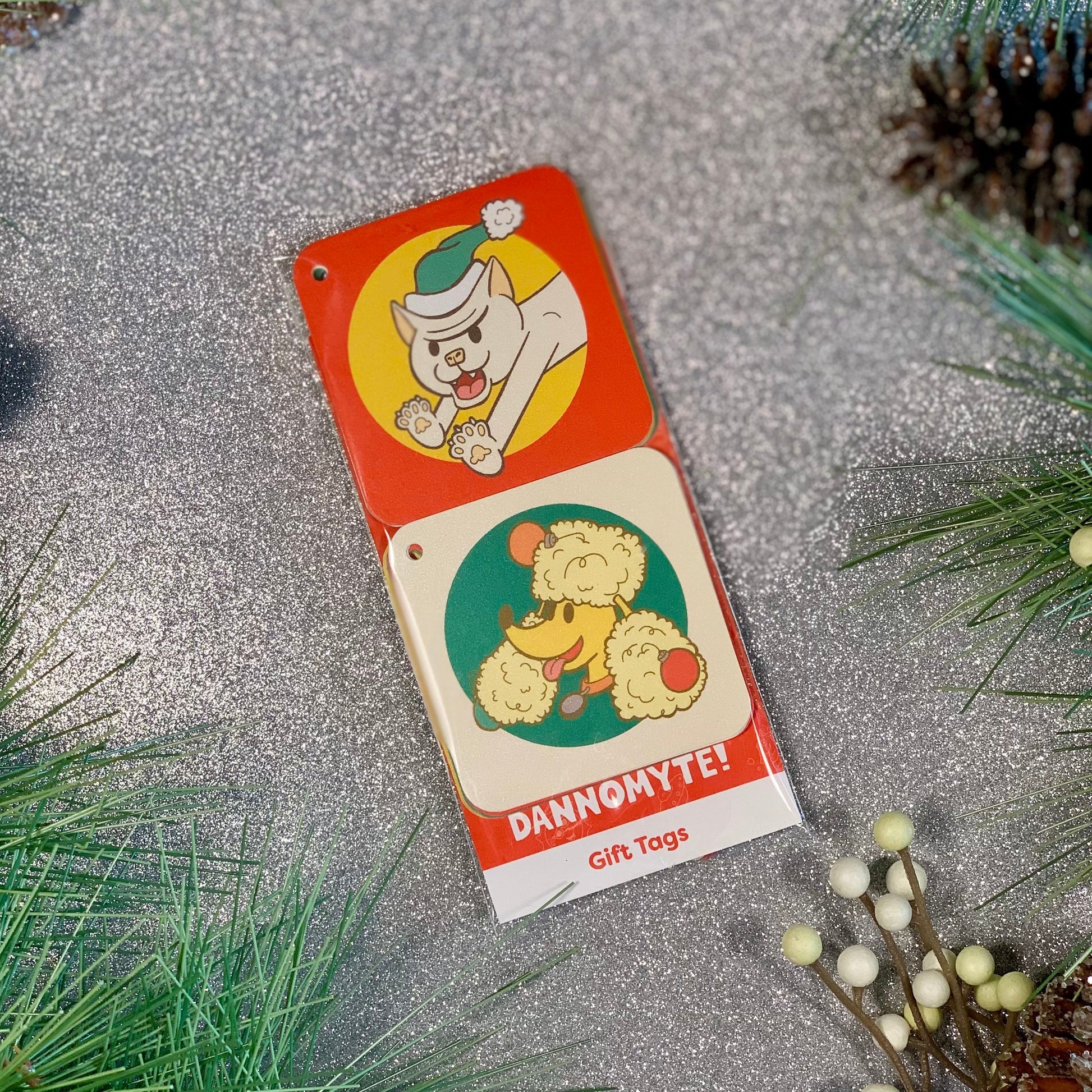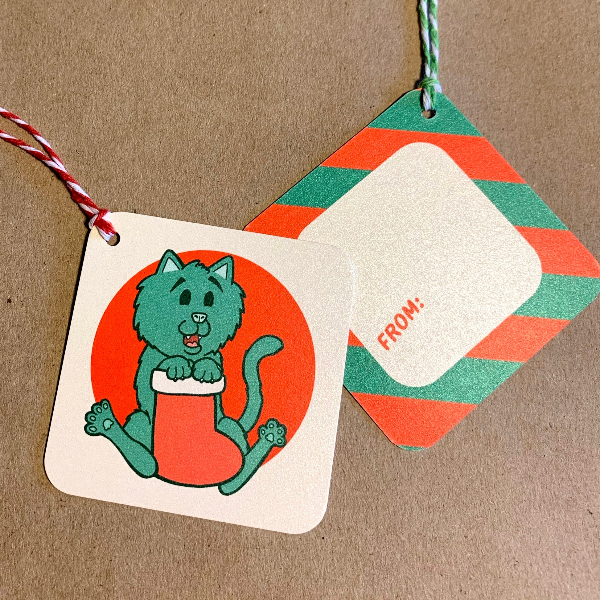 16 Gift Tag Set with Cats and Dogs Christmas Holiday Pet Theme (2.5 x 2.5 inch)