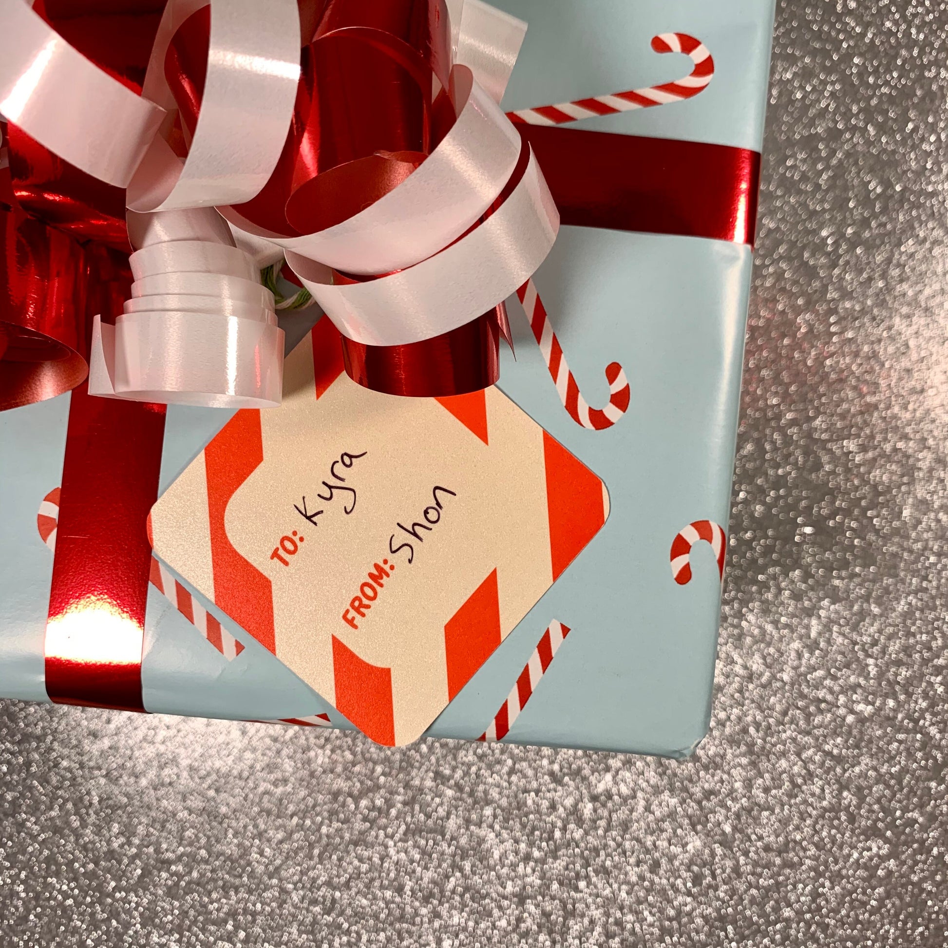 2.5 × 2.5 inches, these tags are a hefty, visible size that will not be missed when looking under the tree! There is 16 strings of Bakers twine in 4 different colors to match the colors of the tags. Each string should be roughly 10 inches long. I cut these by hand, so lengths may vary.