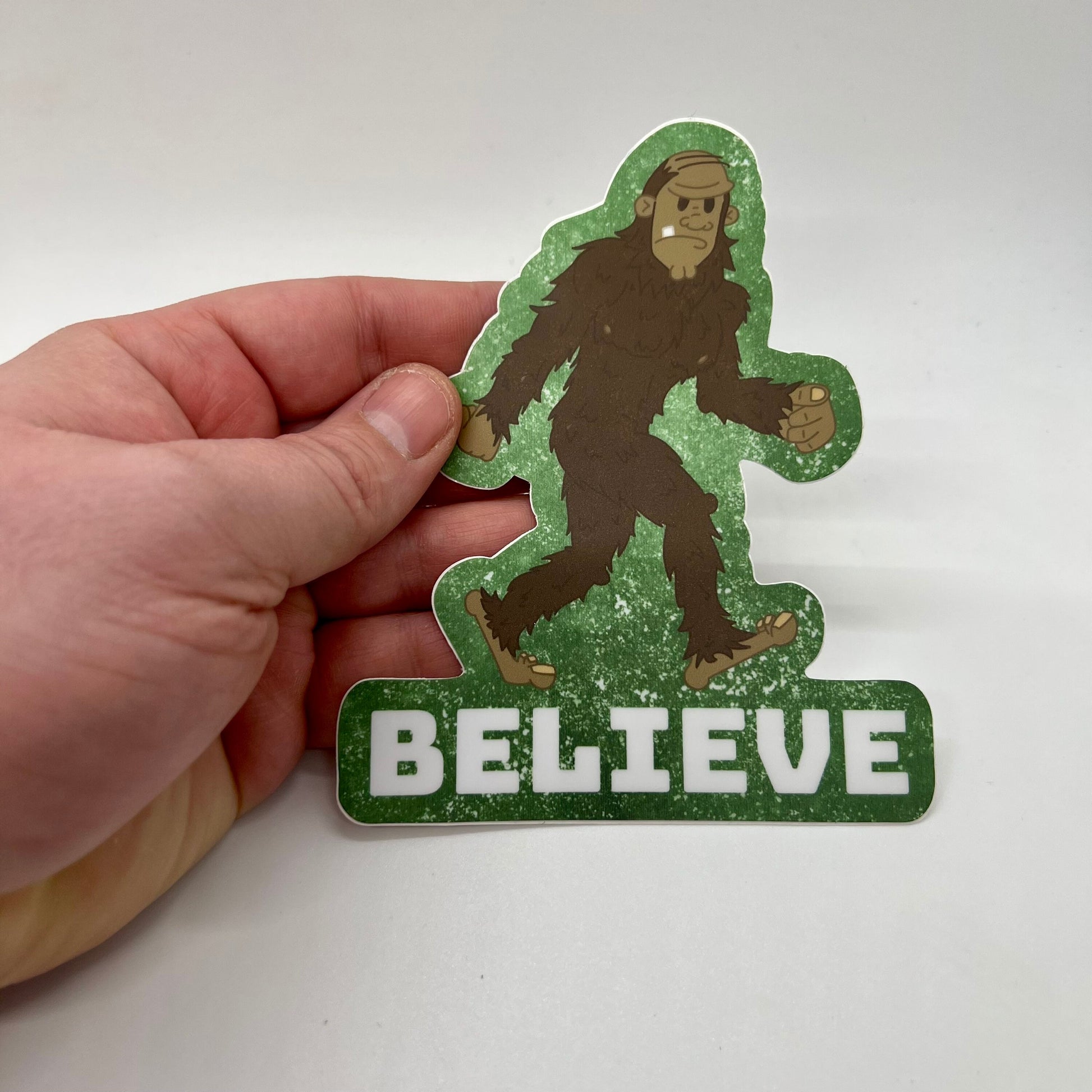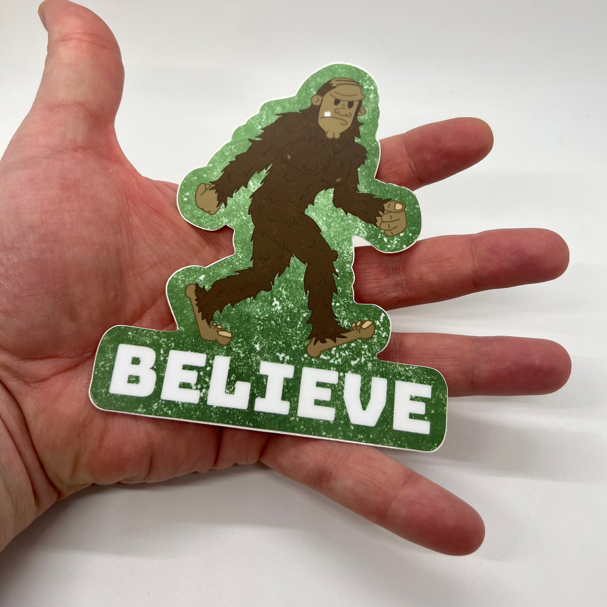 Funny Decal Stickers — Believe. Bigfoot sticker (Approx 4 inch × 5 inch and waterproof). For cars, windows, laptops, water bottle