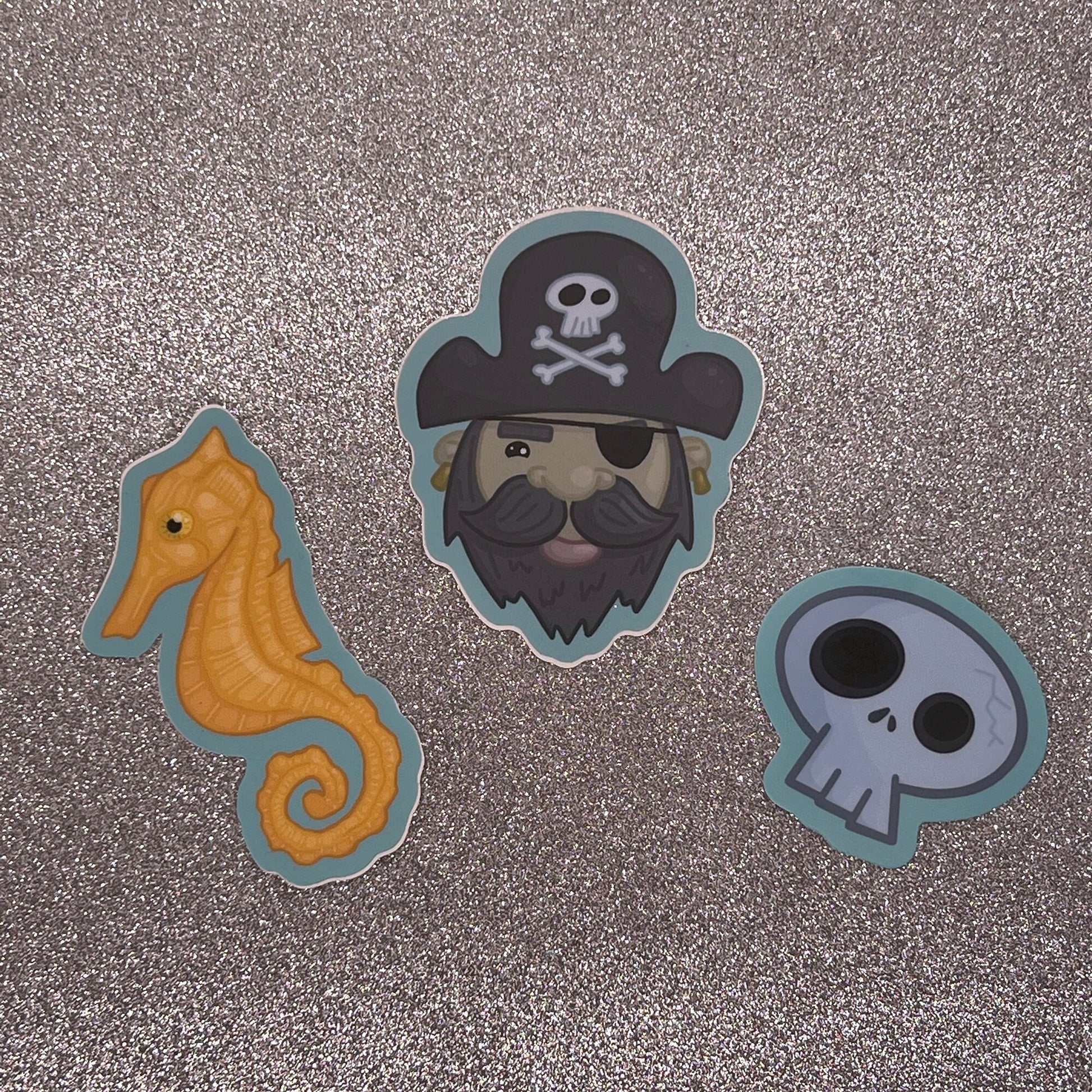 Yo-ho-ho! A pirate's skull for me! This is definitely intended to go along with a series of nautical stickers, but can definitely fit in for Halloween, or just any sort of skull decor. Look for the Pirate and Seahorse stickers in my shop as well!