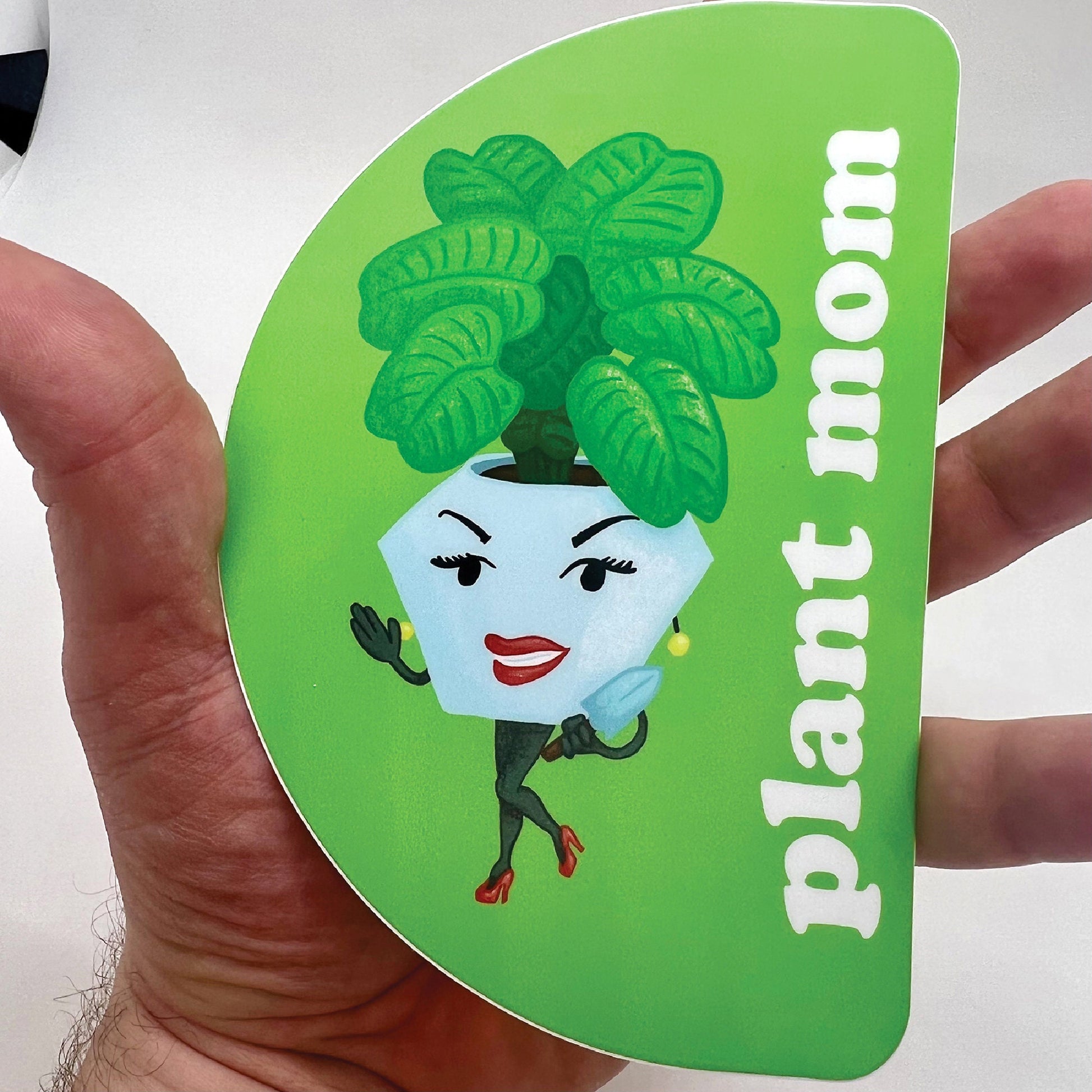 Meet our fabulous foliage Mama, strutting in 50's-style couture , and the dapper Snake Plant Daddy rocking his retro glasses, a watering can and big ol' Moustache. These illustrated characters add a touch of fun and whimsy to any plant collection, making them perfect for green thumbs and anyone who adores their leafy companions.