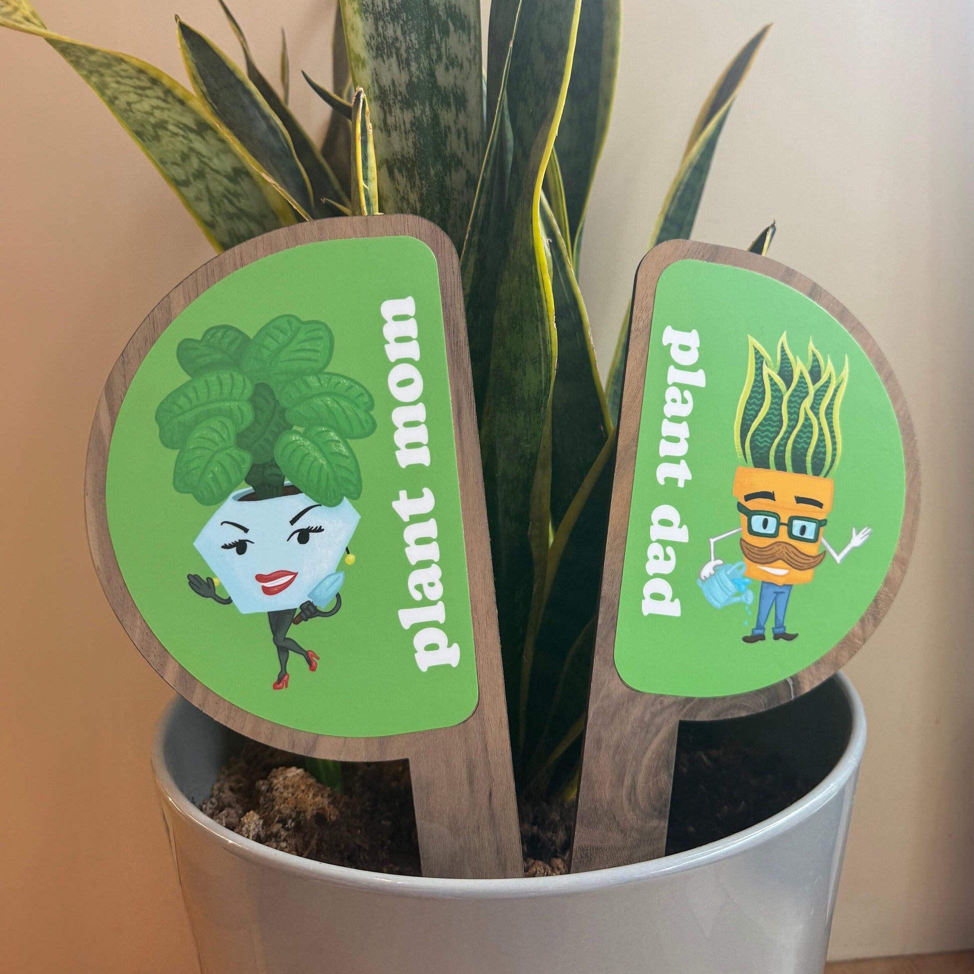 Plant Stakes β Plant Mom and Plant Dad (12 in x 4.5 in, Laser cut maple plywood plant stake for the Green thumb in your life)