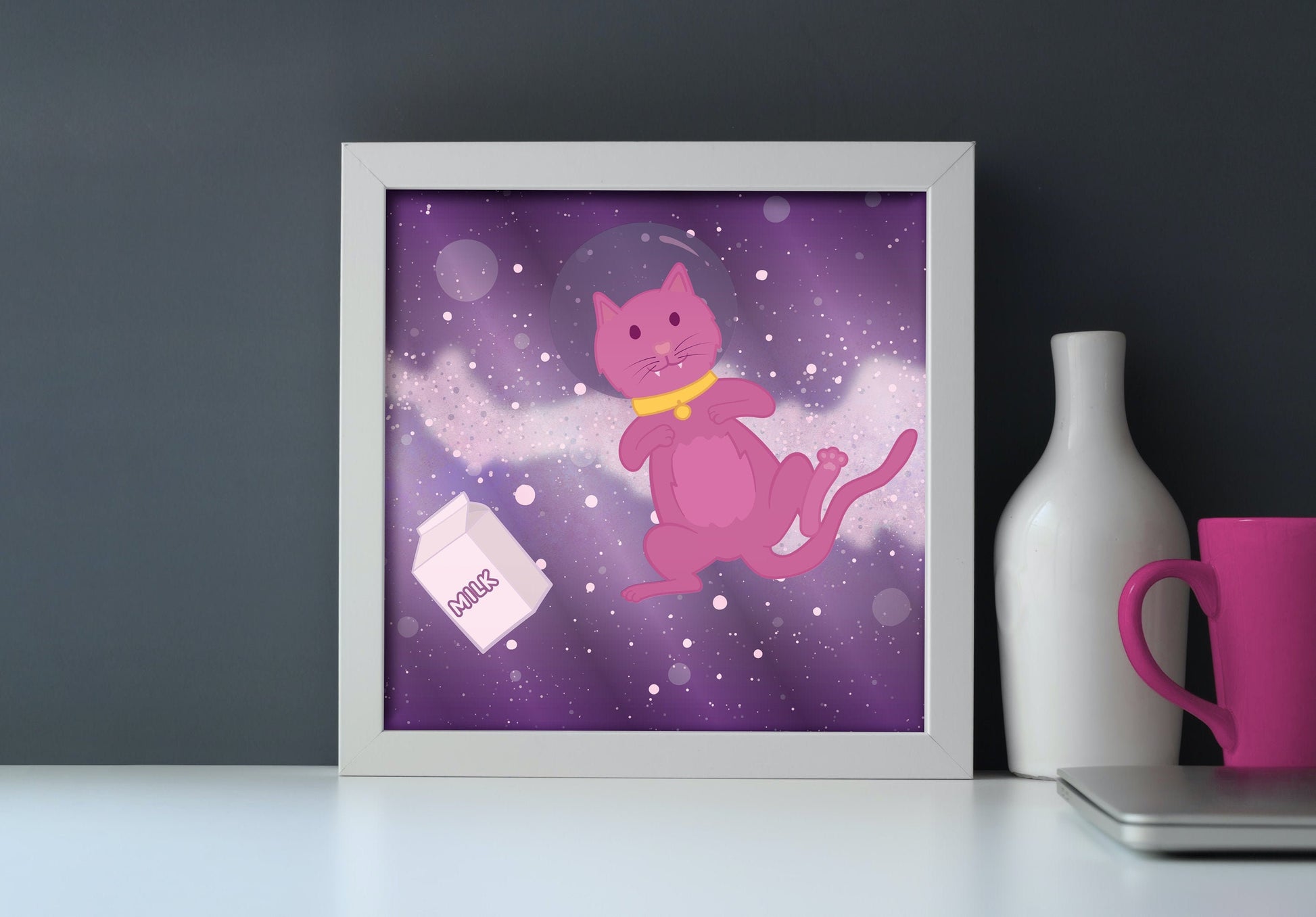 Space Kitten Metallic Foil Print (8 x 8 inches, Frame not included)