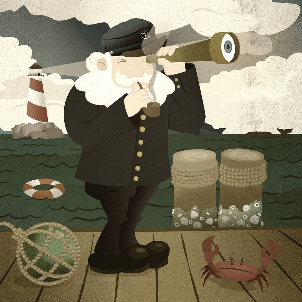 The Naval Captain — 8 x 8 in Illustrated Digital Print (Frame not included)